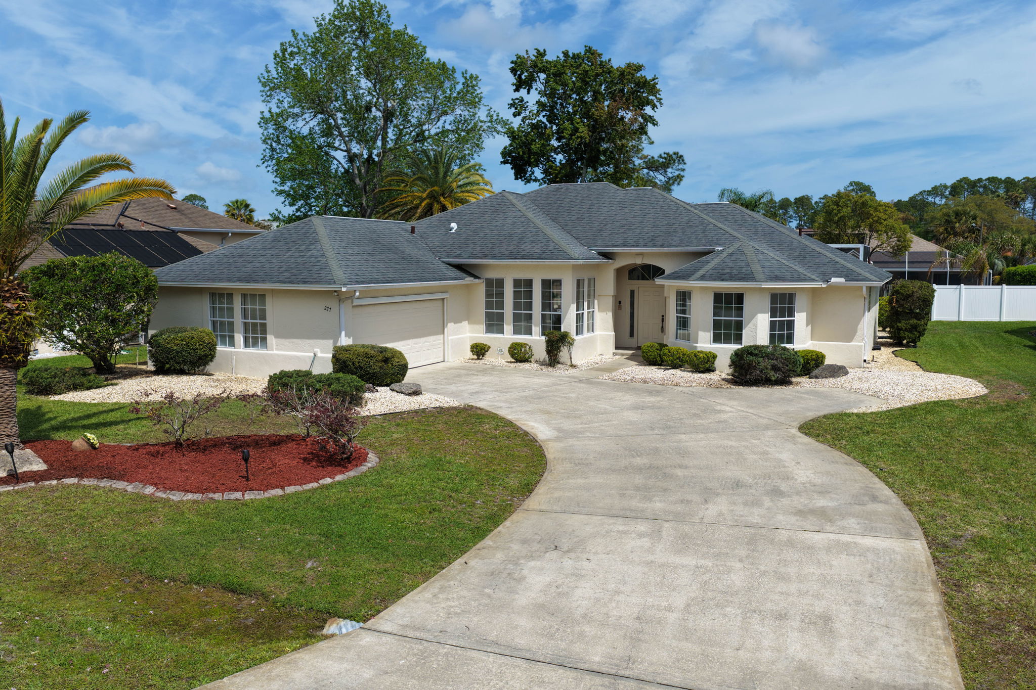 HGTV Dream Opportunity | Former Model Home | Pool + Spa + Greenhouse in Pine Lakes Imagine the possibilities with this original 1993 Machin Construction model home, ready for its next chapter and priced to give you room to create something truly special. Whether you’re a first-time buyer, design enthusiast, or simply looking to secure a home in the highly desirable Pine Lakes community at an attractive price point, this is your chance to bring your vision to life and build instant equity. From the moment you step inside, you’ll notice the soaring cathedral ceilings, natural light pouring through arched clerestory windows, and the seamless flow to the expansive screened pool deck, creating that coveted indoor-outdoor Florida lifestyle. The backyard is your blank canvas, featuring a sparkling pool with ultramarine tile, a heated spa with cascading waterfall, multiple lounging areas, and space to design your own private tropical retreat. There’s even a greenhouse ready to be refreshed into your personal garden oasis, along with a charming fountain feature waiting to be reimagined. The split floor plan offers 3 bedrooms and 2.5 baths, including a spacious primary suite with sitting area, walk-in closet, and ensuite bath with double vanities, soaking garden tub, walk-around shower, skylight, and private water closet. Guest bedrooms are privately positioned with access to a full bath and convenient pool bath. The kitchen offers flexible dining options with a breakfast nook, counter seating, and views to the pool through a frameless butt-glazed window, perfect for everyday living or entertaining. Appliances are original and functional (dishwasher not working), giving you the freedom to design and update at your own pace. Additional highlights include a 2014 roof, 2013 water heater, central vacuum system, roof water heating system for spa, and a side-entry garage with extended driveway for easy access and extra parking. Mature landscaping and inviting curb appeal sets the stage, while inside, the home has been virtually staged to help you fully envision the transformation. Located in the Pine Lakes golf course community and just minutes to shopping, dining, and all that Palm Coast has to offer, this home is more than a property, it’s an opportunity to create your dream. If you’ve been waiting for the right canvas in the right location, this is it! Schedule your showing today and start imagining what’s next.